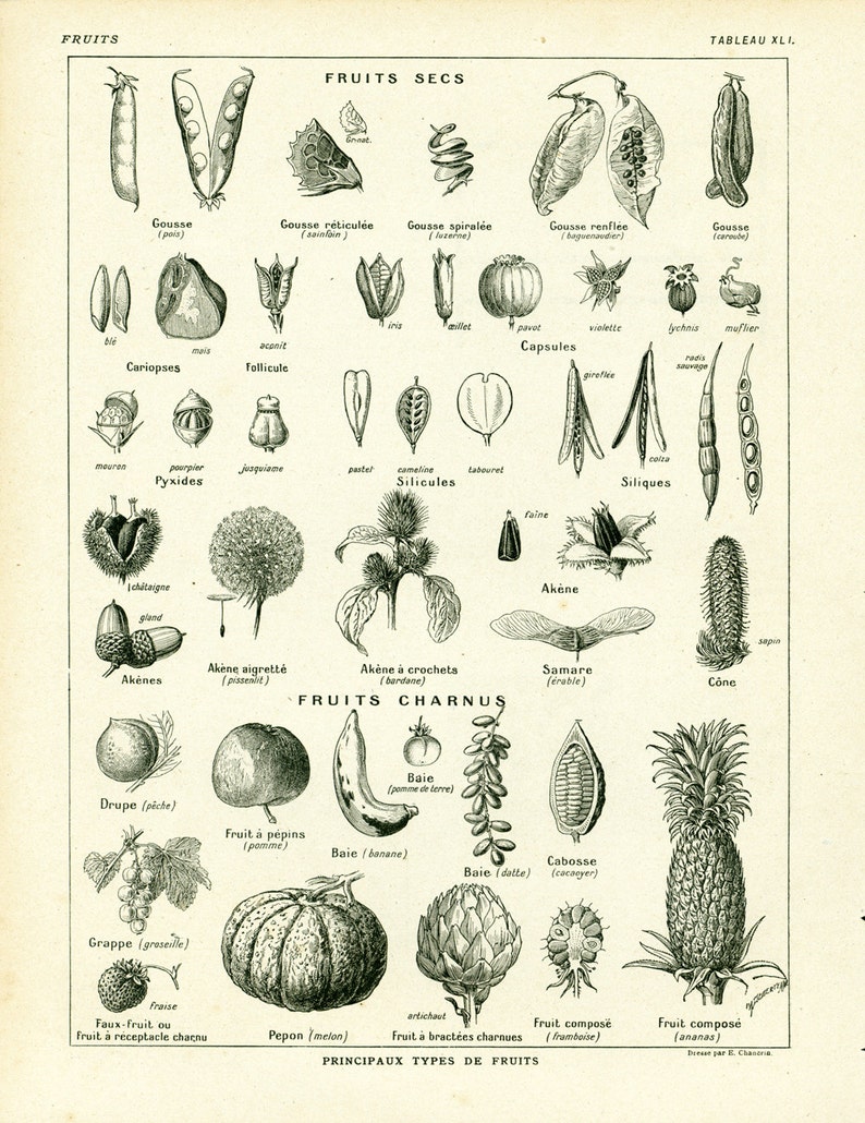 1922 Types Of Freshy Fruits Vintage Botanical Print Dry Fruit Print Larousse Identification Chart Botany Wall Art
